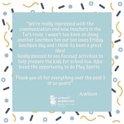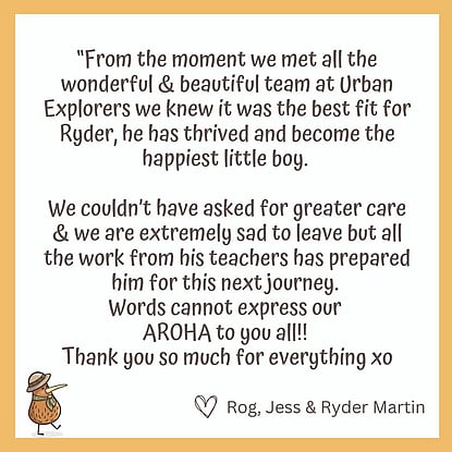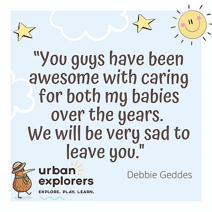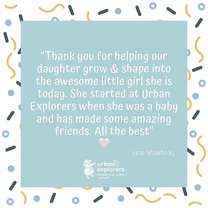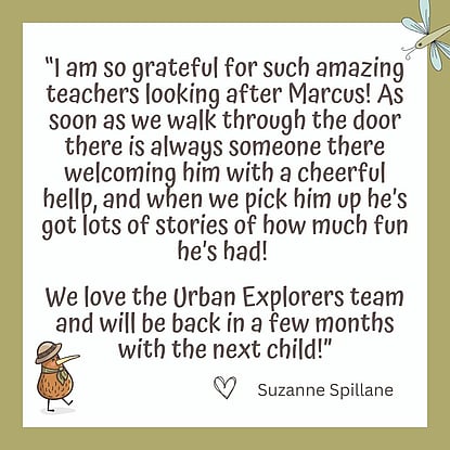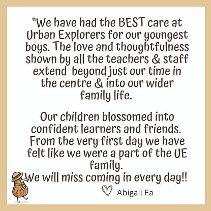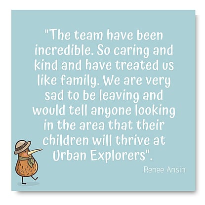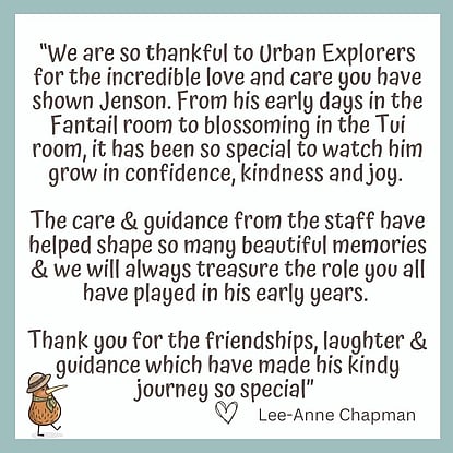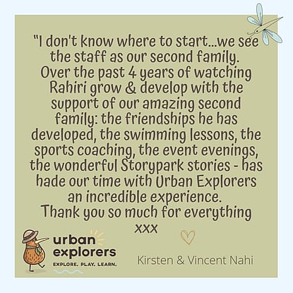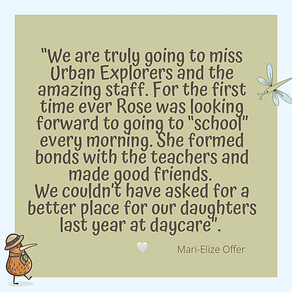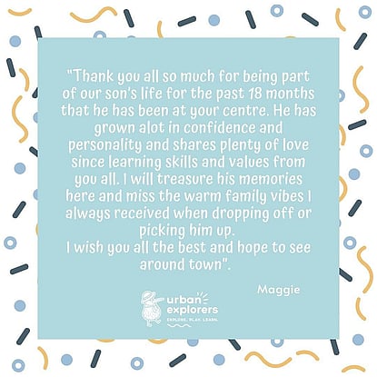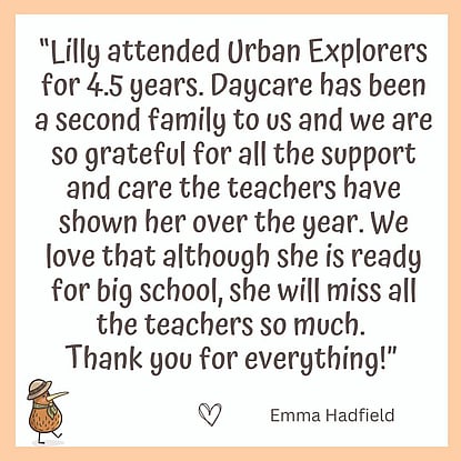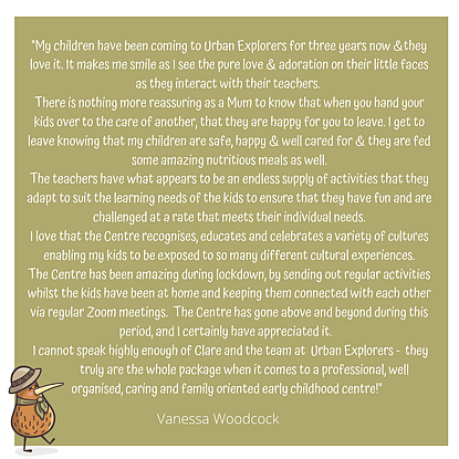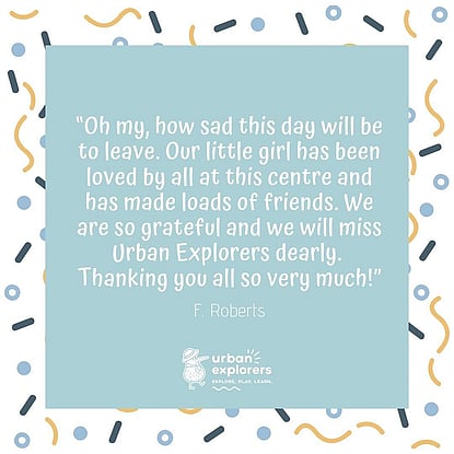 "Dear Urban Explorers Daycare Team, the space on the leaving form was not big enough for feedback -so true to form I am going off script!