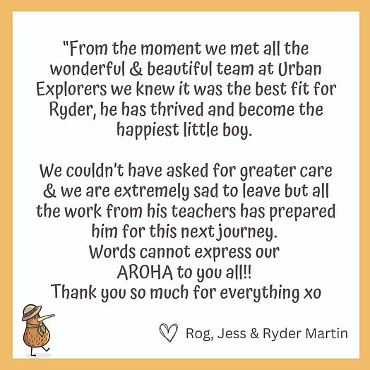"Dear Urban Explorers Daycare Team, the space on the leaving form was not big enough for feedback -so true to form I am going off script!