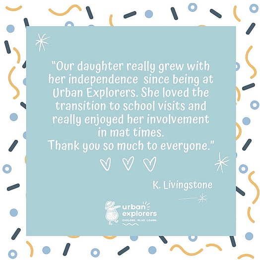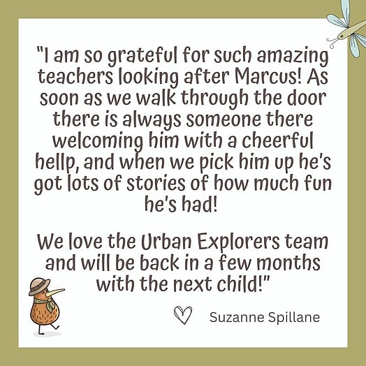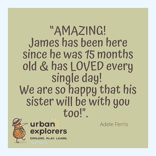 As Sam prepares to take his first steps into formal education, I wanted to take a moment to express our gratitude for the wonderful experience he has had at Urban Explorers. Unlike many children Sam has attended 3 different centres -each different, and each 'fit for purpose' regarding his stage in life and our location.